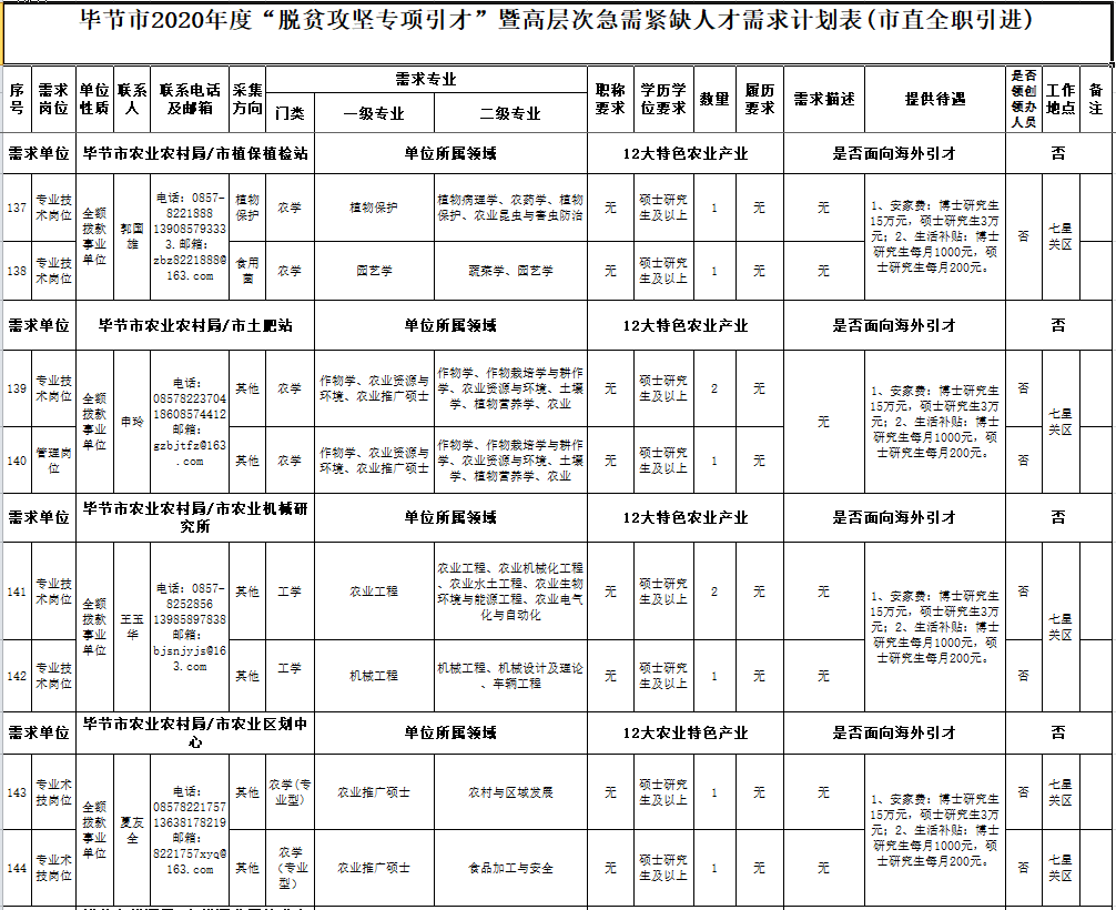 畢節(jié)市農(nóng)業(yè)農(nóng)村局下屬單位人才引進(jìn)需求單位咨詢電話詳見附件。